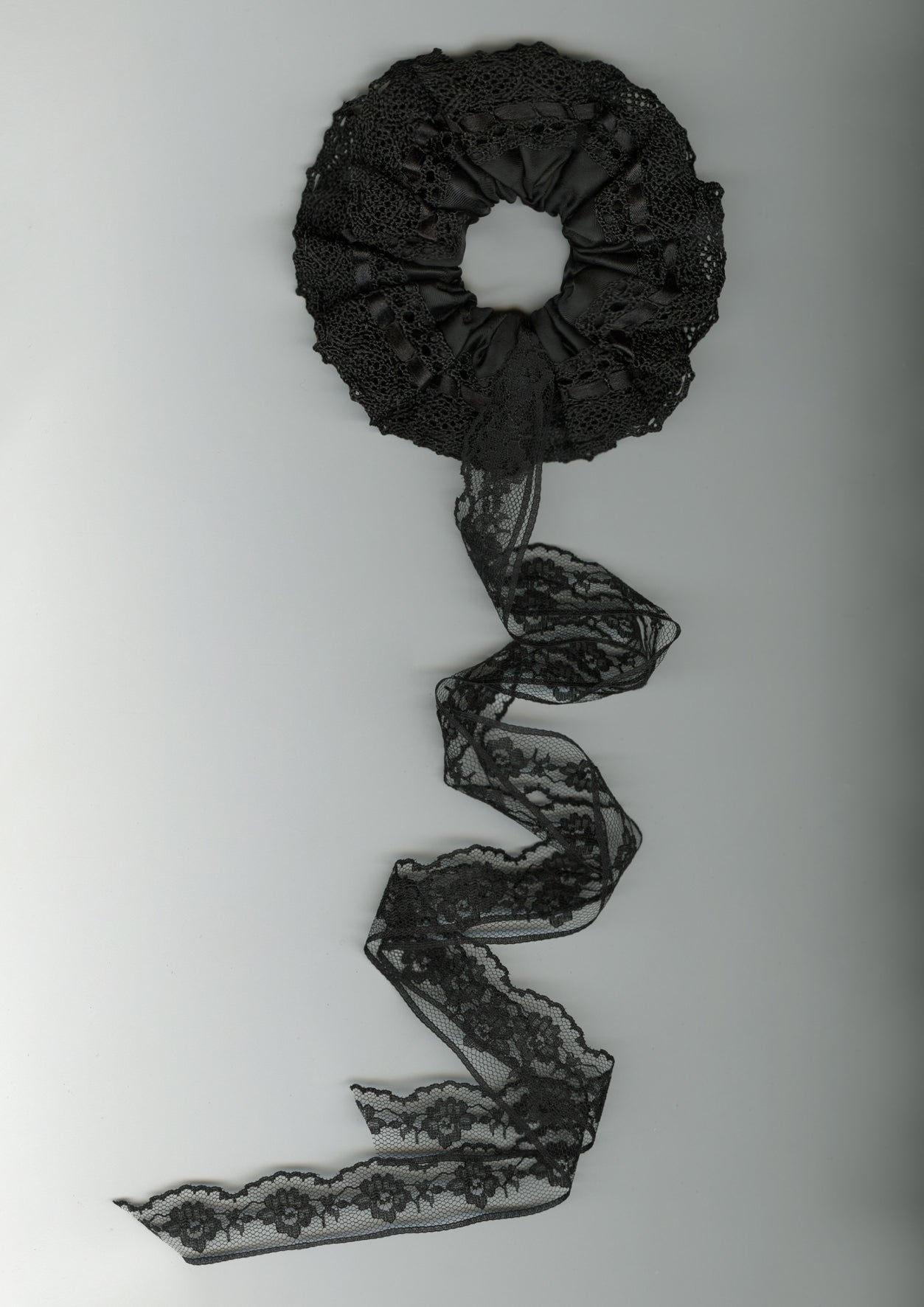 Satin and lace Scrunchie with Lace Ribbon - Black