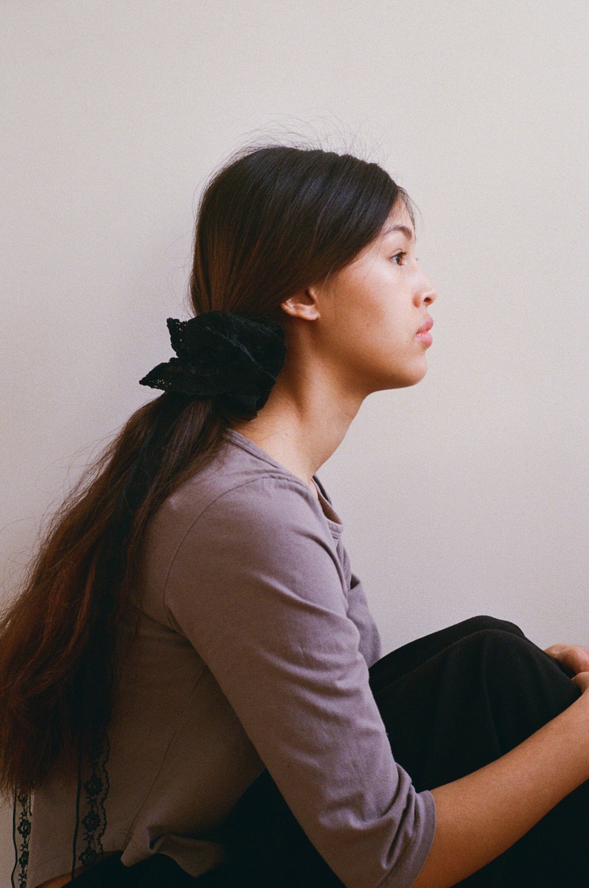 Each scrunchie is finished with our signature detachable lace ribbon, versatile and playfully refined. Weave it through a braid, knot it around a ponytail, or wear it on its own as a subtle statement.