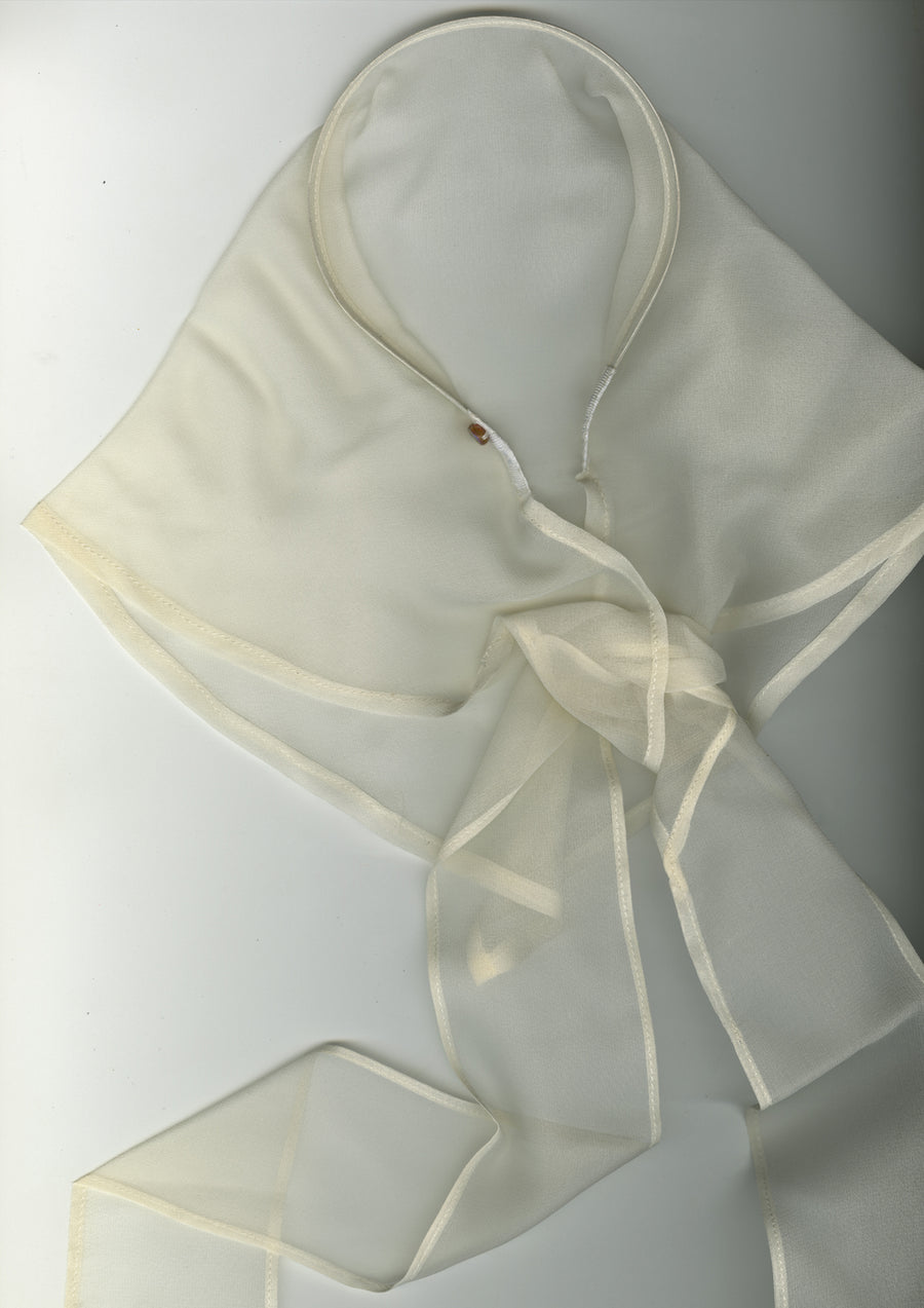 This sheer pearl white bandana is crafted from 100% silk georgette, offering an ethereal touch of softness and movement.