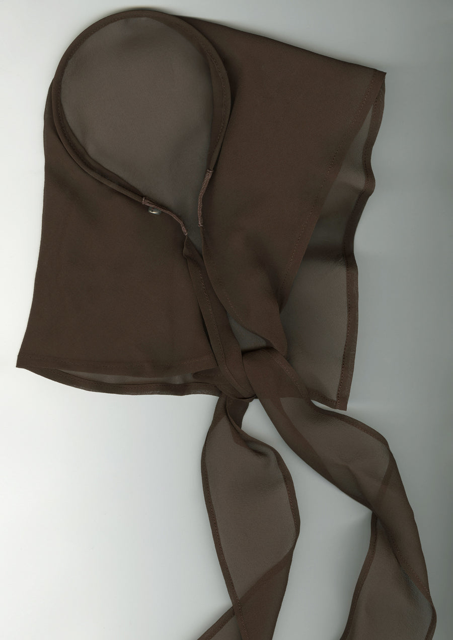 This sheer dark brown bandana is crafted from 100% silk georgette, offering an ethereal touch of softness and movement.