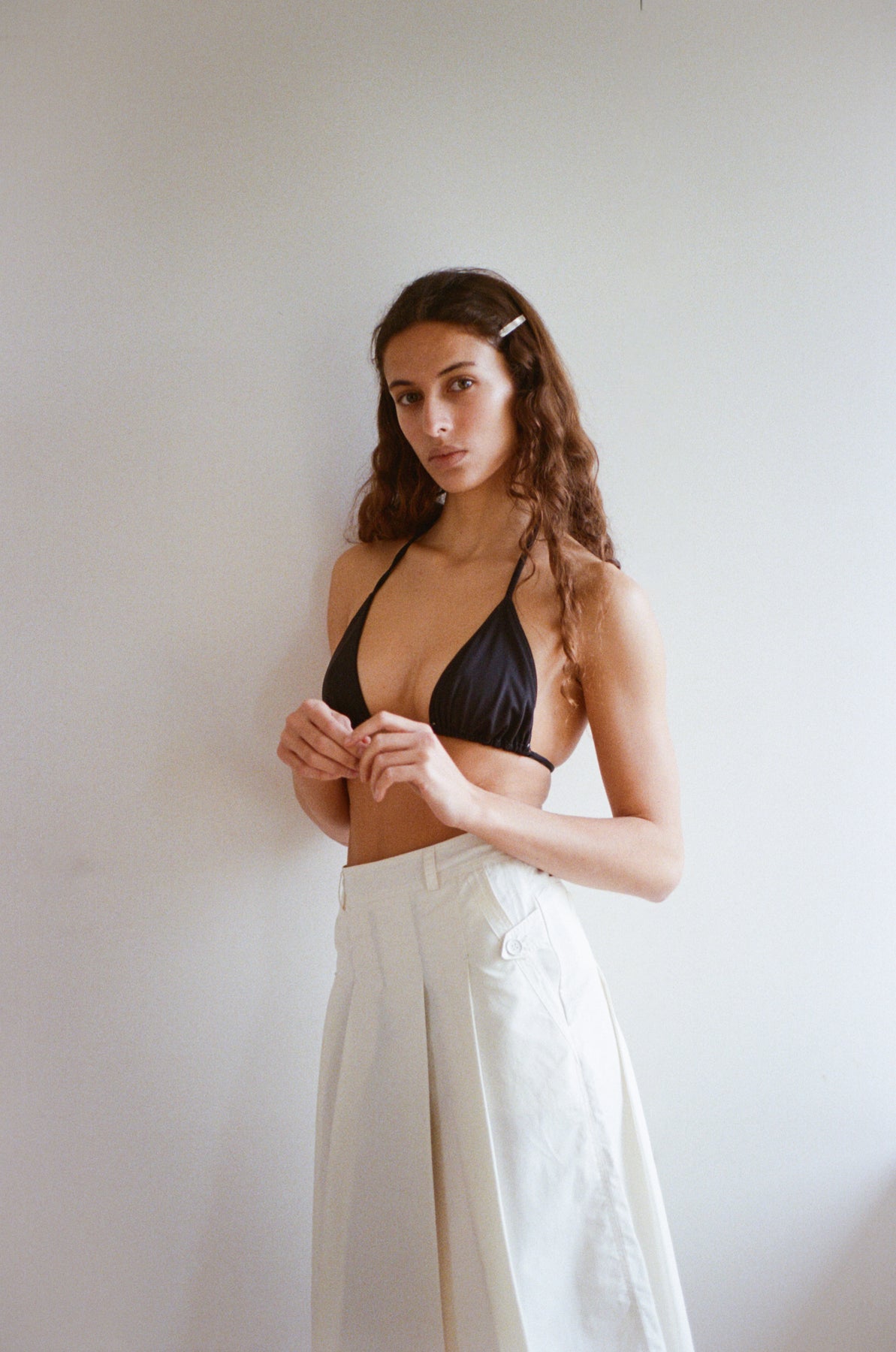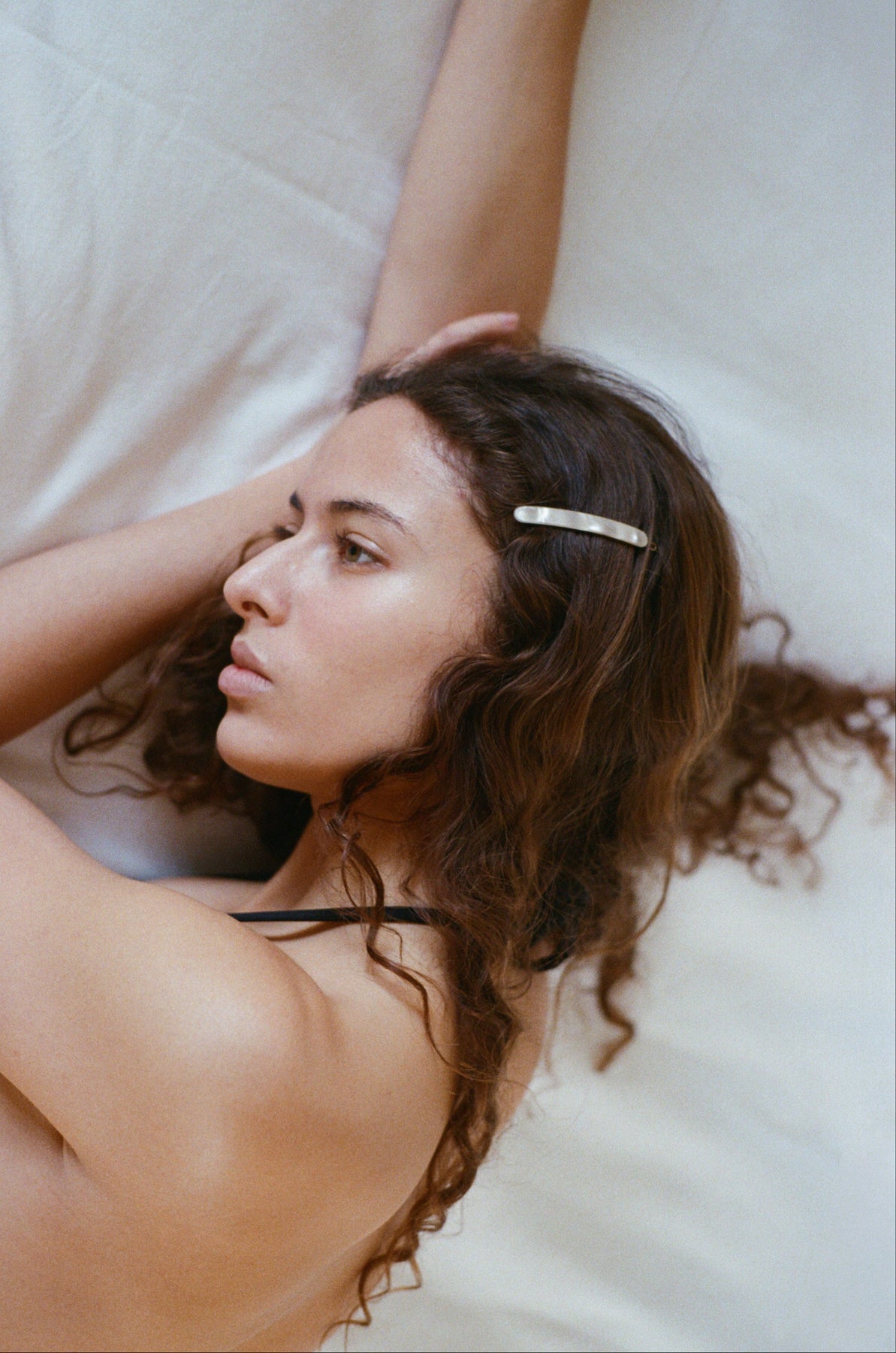 Handcrafted in France, this slim barrette is sculpted from smooth cellulose acetate in a refined, elongated silhouette. Minimal and precise, it is designed to sit close to the head, securing strands with quiet structure.