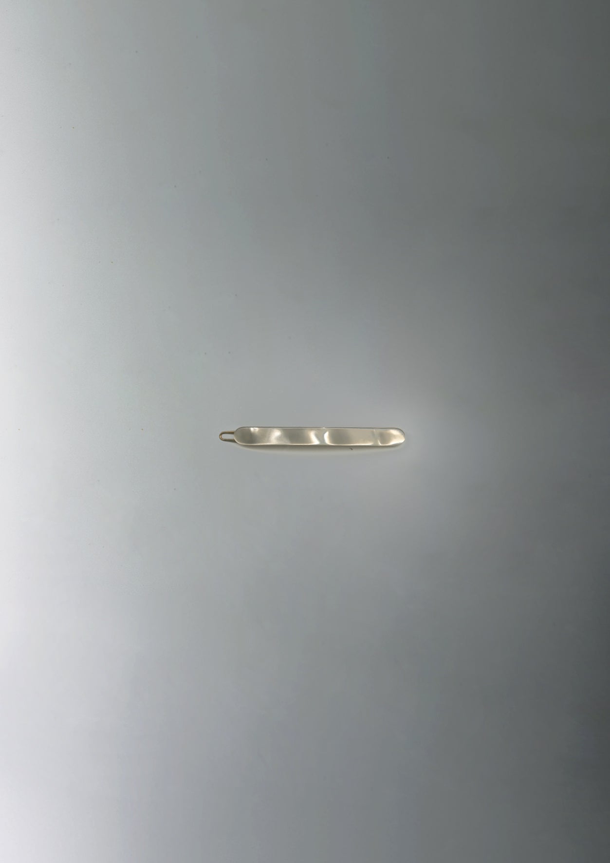 Its pearly cream surface reflects light with a soft sheen, while the discreet metal spring ensures a firm, comfortable hold without pulling. Ideal for pinning back a single section, refining a side part, or adding subtle definition to loose hair.