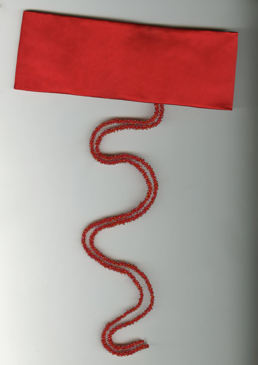 Satin Headband with Glass Beads — Red