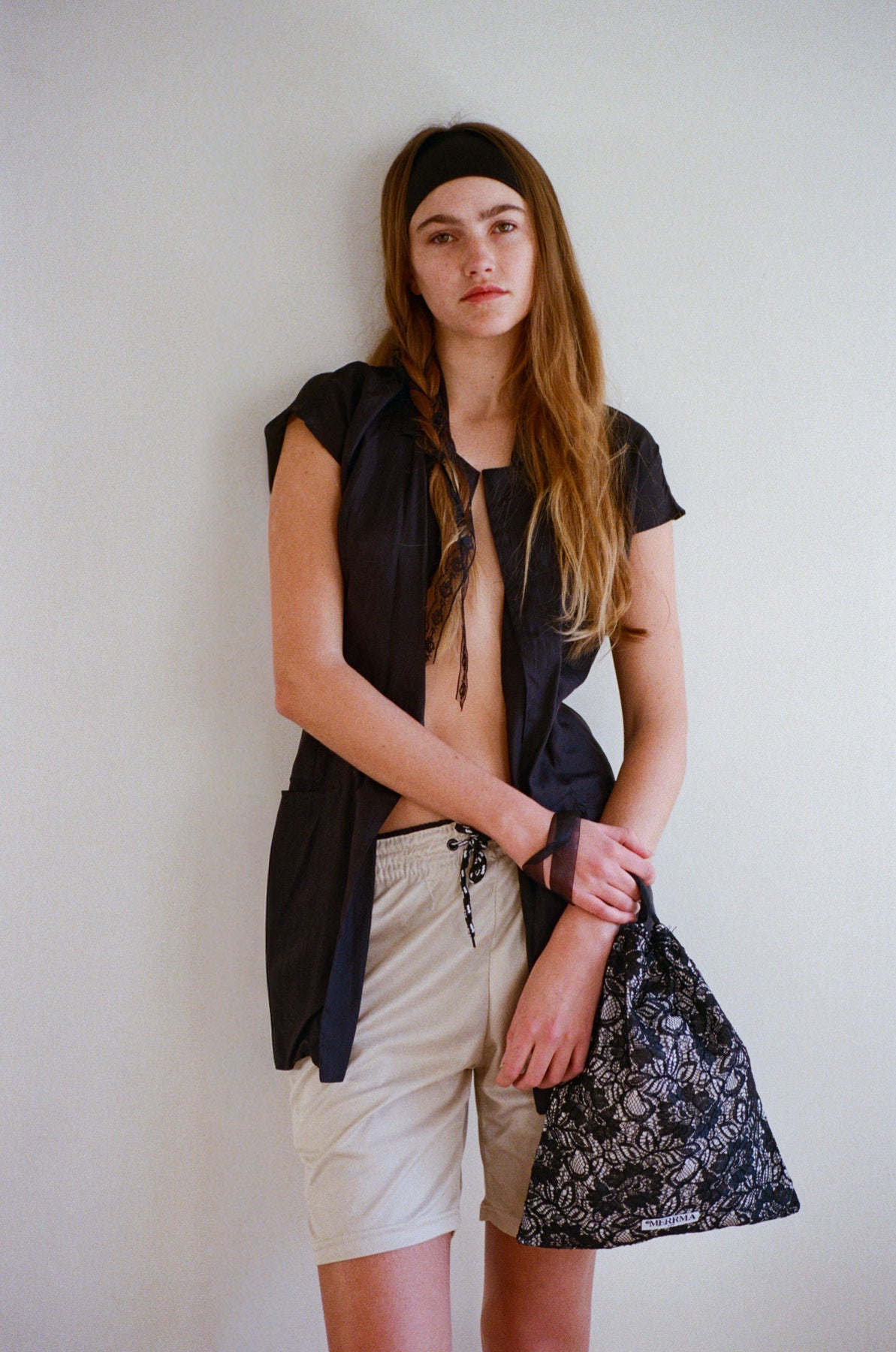 Finished with slender drawstrings, it closes securely and can be carried by hand or placed inside a larger bag. Sized to hold hair accessories or small essentials without bulk.